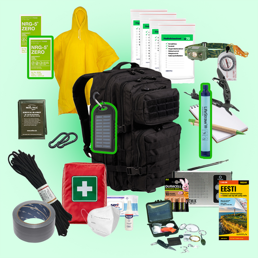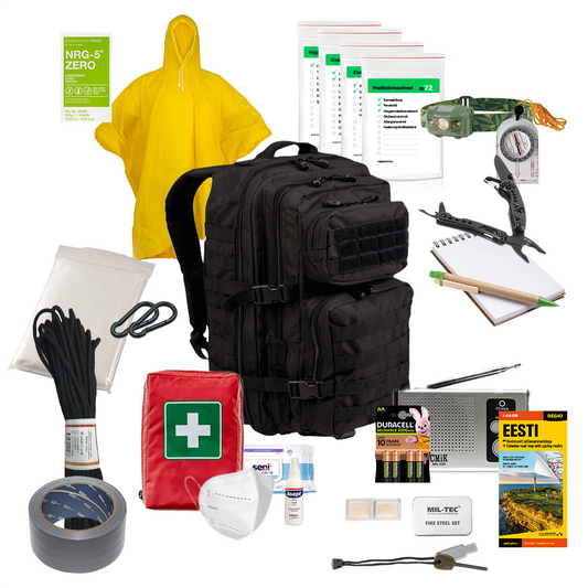 72-tunnine ellujäämiskott on teie päästja, kui saabub päev X. Hoolikalt kokkupanduna on see kõik, mida kolmeks päevaks vajate: toit, esmaabitarbed, multitööriistad ja kaitsevarustus.